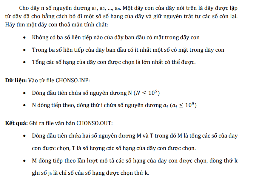 CHỌN DÃY CON CÓ TỔNG LỚN NHẤT