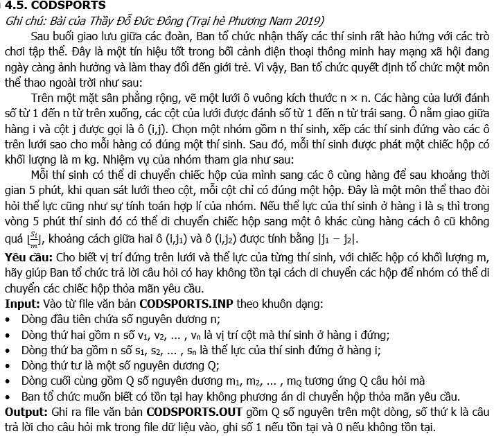 - Subtask 6: Có ~20\%~ số test còn lại có ~Q \le 10^5;\ n \le 10^5~;
