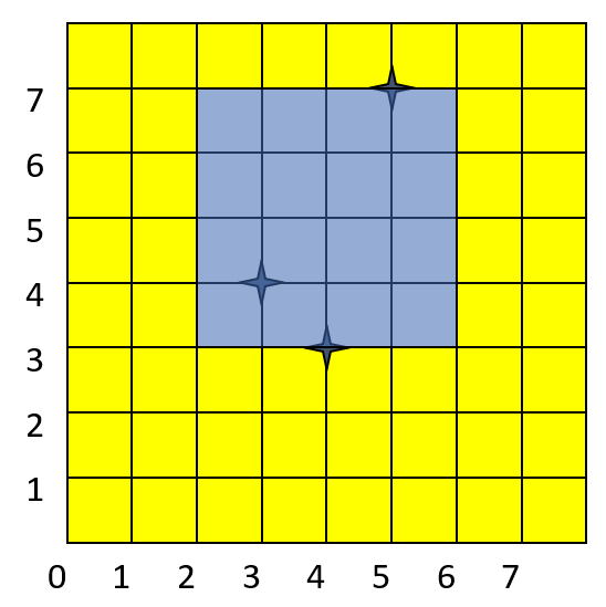 Trên mặt phẳng với hệ tọa độ Descartes vuông góc ~Οxy~ cho ~n~ điểm. Hãy tìm hình vuông nhỏ nhất có cạnh song song với một trong hai trục tọa độ chứa tất cả ~n~ điểm đã cho (điểm nằm trên cạnh hình vuông cũng bị tính là chứa trong hình vuông)
