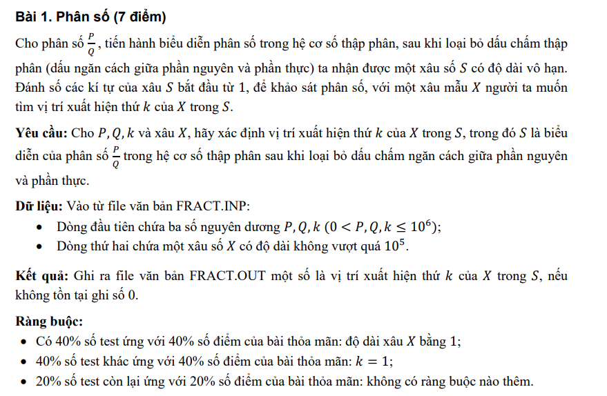 Note: Test yêu cầu tìm vị trí tính sau dấu chấm thập phân, đề bài diễn tả không đúng. Nói cách khác, ~S~ chỉ bao gồm phần thập phân, các bạn lưu ý.